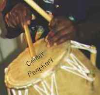 Two positions of the drum head are the most commonly used for striking: the center and the peripheral zone. Stick and full hand techniques are used at the center while the technique employing the fingers is used at the periphery.