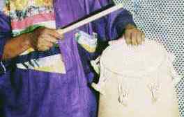 While many things affect the pitches produced by Atsimevu - the quality of the carved cylindrical body, the thickness, diameter and tension of the membrane etc. - the aspect that has the most significance in the area of performance is the quality of the techniques that control the release of the various frequencies of vibration. These techniques are the primary concern of the performer and we shall discuss them in the context of the pitches they produce.
