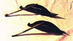 A bounced stick shot across the top of the child forged-iron produces a high pitch voice described in vocal syllable as "Go."